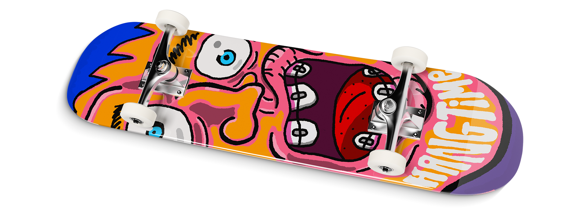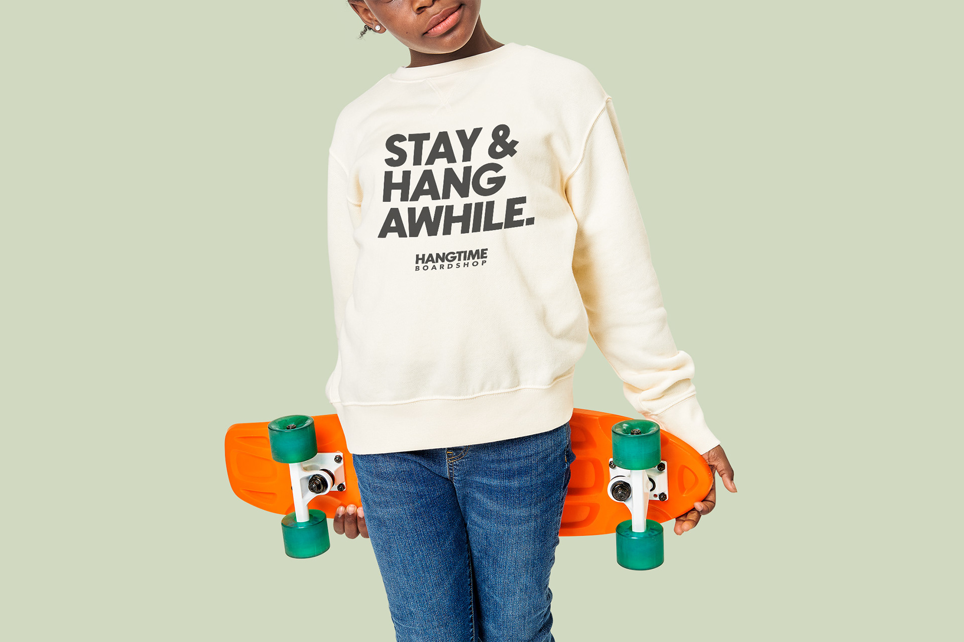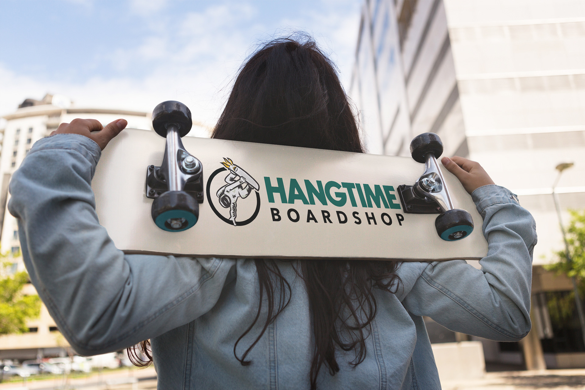 EXECUTION: The idea evolved through numerous iterations of typical skate concepts. Eventually, we envisioned elevating skate culture and community to the next level: outer space. This led to the development of the Blastronaut and resulted in a dynamic identity for Hangtime Boardshop.